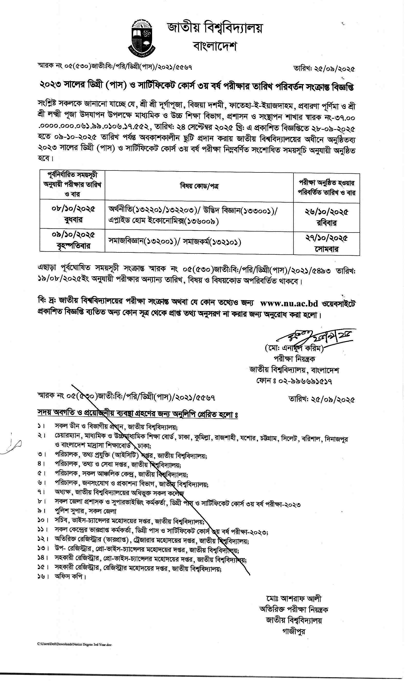 | 45 | 2025-08-20 | ২০২৩ সালের ডিগ্রি পাস ও সার্টিফিকেট কোর্স ৩য় বর্ষ পরীক্ষার সময়সূচি | View Download |