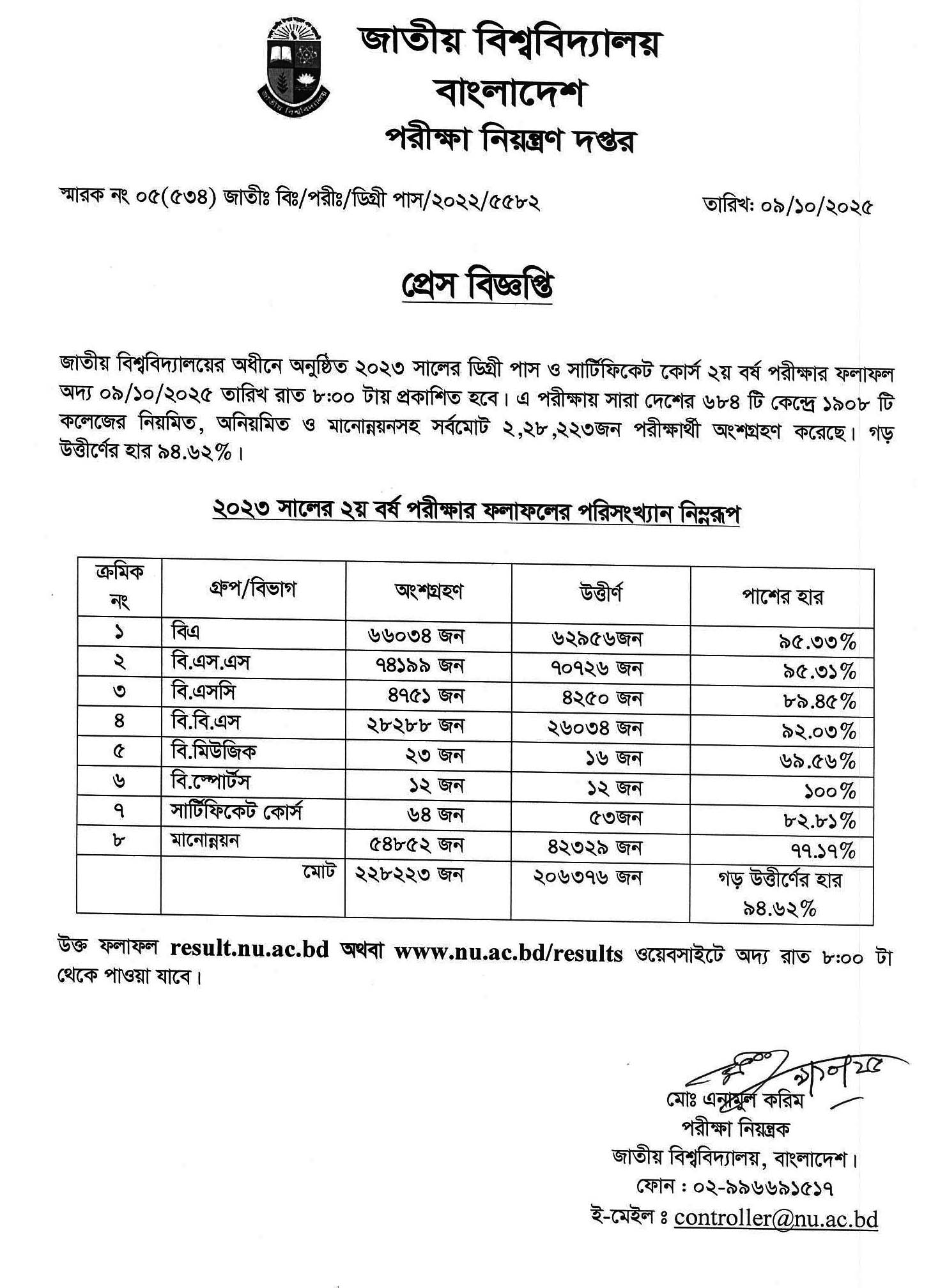 | 29 | 2025-10-11 | ২০২৩ সালের ডিগ্রি পাস ও সার্টিফিকেট কোর্স ২য় বর্ষ পরীক্ষার ফলাফল প্রকাশের বিজ্ঞপ্তি | View Download |